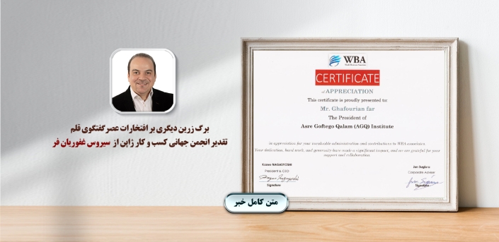 برگ زرین دیگری بر افتخارات عصرگفتگوی قلمتقدیر انجمن جهانی کسب و کار ژاپن از سیروس غفوریان فر