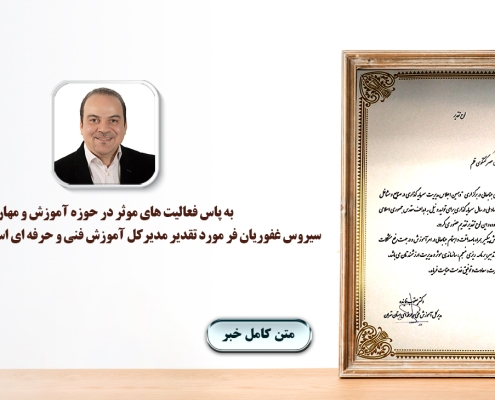 سیروس غفوریان فر، مورد تقدیر مدیرکل آموزش فنی و حرفه ای استان تهران قرار گرفت