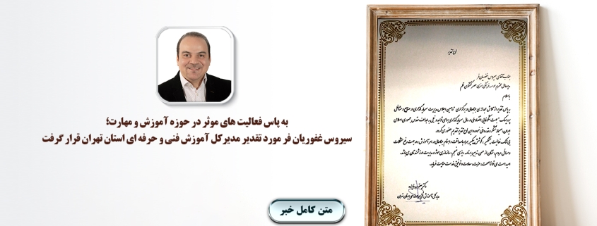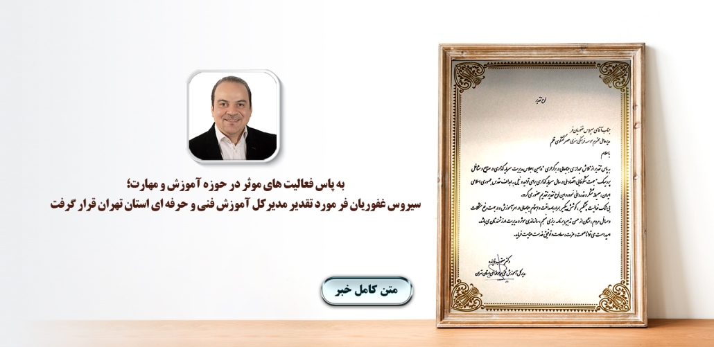 به پاس فعالیت های موثر در حوزه آموزش و مهارت؛سیروس غفوریان فر، مورد تقدیر مدیرکل آموزش فنی و حرفه ای استان تهران قرار گرفت