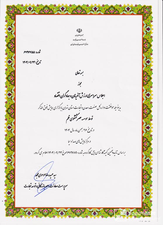 به گزارش روابط عمومی مؤسسه عصر گفت‌وگوی قلم، اداره کل صنعت، معدن و تجارت استان تهران مجوز رسمی برگزاری دو همایش اقتصادی مهم را به این مؤسسه اعطا کرد. همایش‌های مورد نظر با عناوین «اجلاس سراسری ارزش‌آفرینان و جهادگران اقتصاد» و «اجلاس سیستم‌های نوین ایجاد اشتغال و کارآفرینی» برگزار خواهند شد.