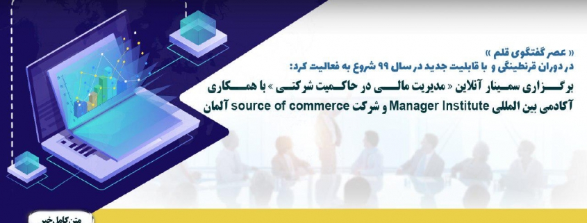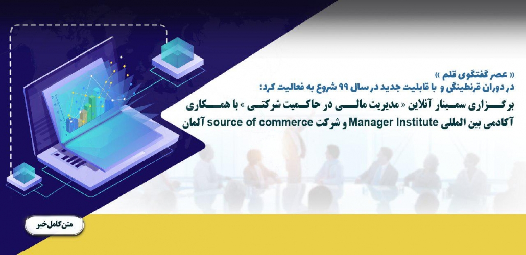 «عصر گفتگوی قلم» در دوران قرنطینگی و با قابلیت جدید در سال 99 شروع به فعالیت کرد: برگزاری سمینار آنلاین “مدیریت مالی در حاکمیت شرکتی” با همکاری آکادمی بین المللی Manager Institute و شرکت source of commerce آلمان