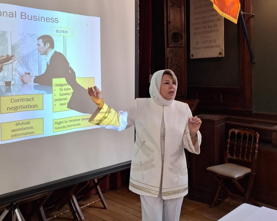 در این سمینار که از ساعت 9:30 در محل یکی از سالن های قدیمی نشست های تجاری شهرداری پاریس برگزار شد، اولین سخنران مینا علاوش، مدیر بخش بین الملل عصرگفتگوی قلم، به بررسی نکات ضروری در نگارش قراردادهای تجاری بین المللی پرداخت.