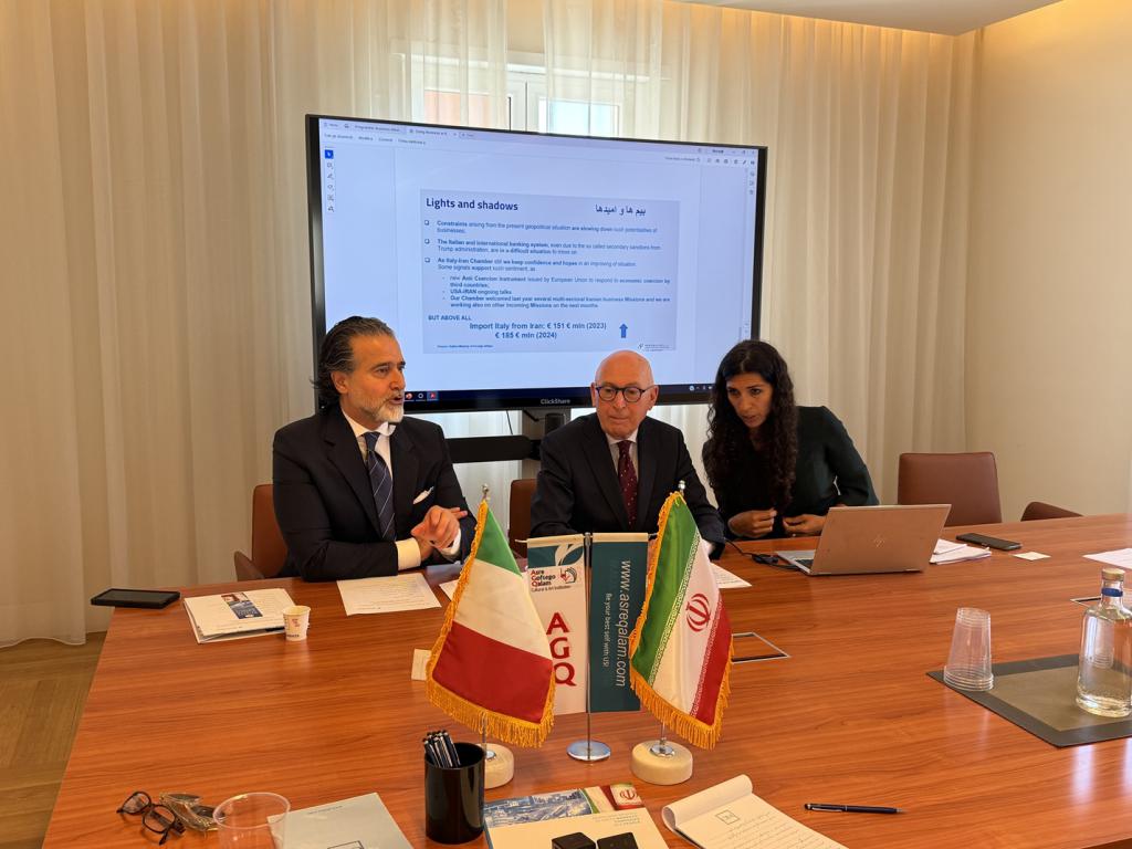 سخنران دیگر این نشست Dr. Pier Luigi d’Agata ، دبیرکل اتاق بازرگانی مشترک ایتالیا – ایران، بود که از اطلاعات آماری بسیار دقیق صادرات و واردات در خصوص تجارت دو کشور استفاده کرد و همچنین آمادگی همکاری این اتاق مشترک را از ایران و یا ایتالیا در خصوص صادرات و واردات کالا اعلام کردند.